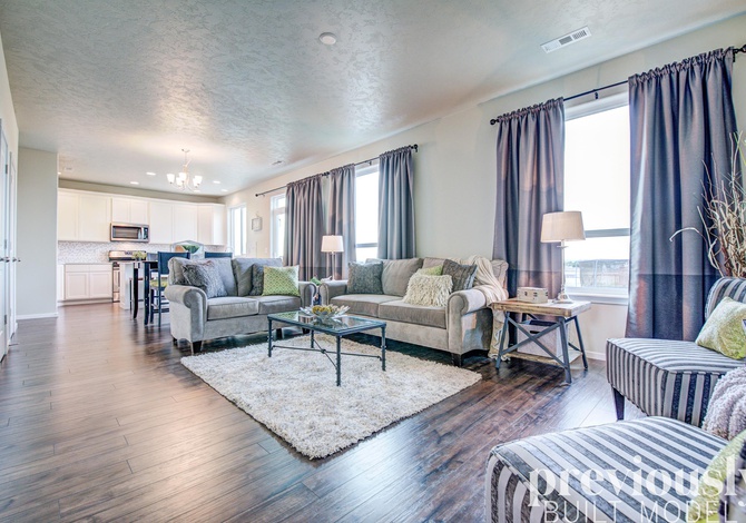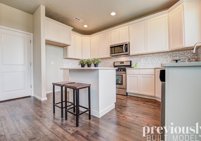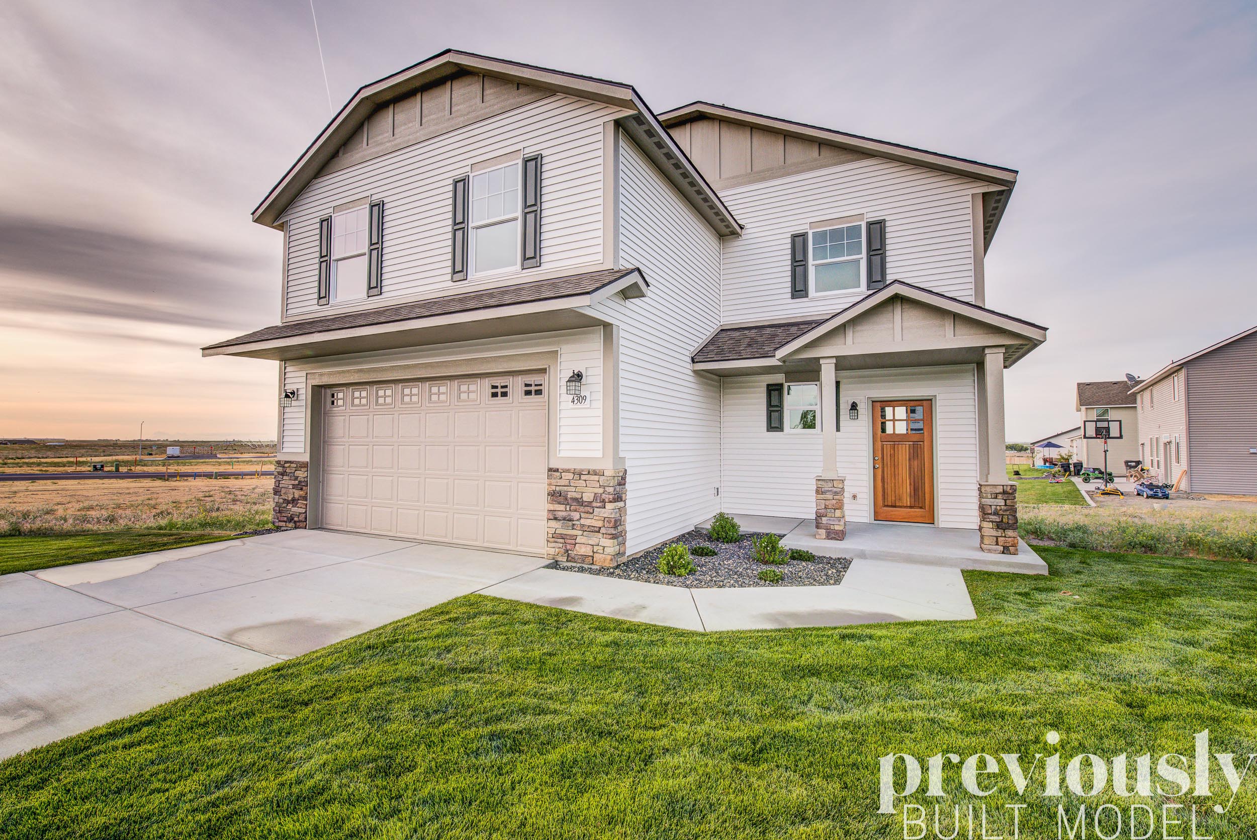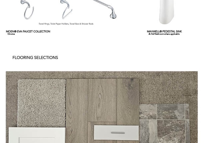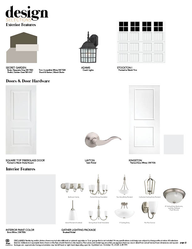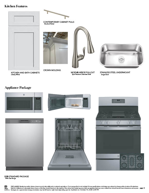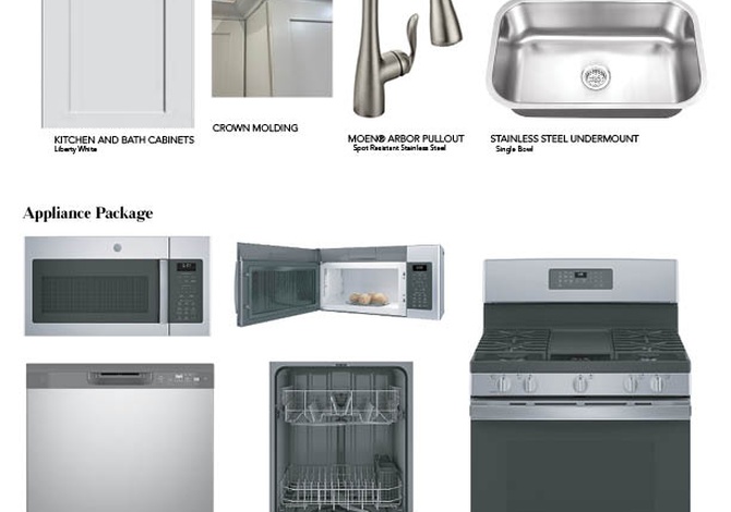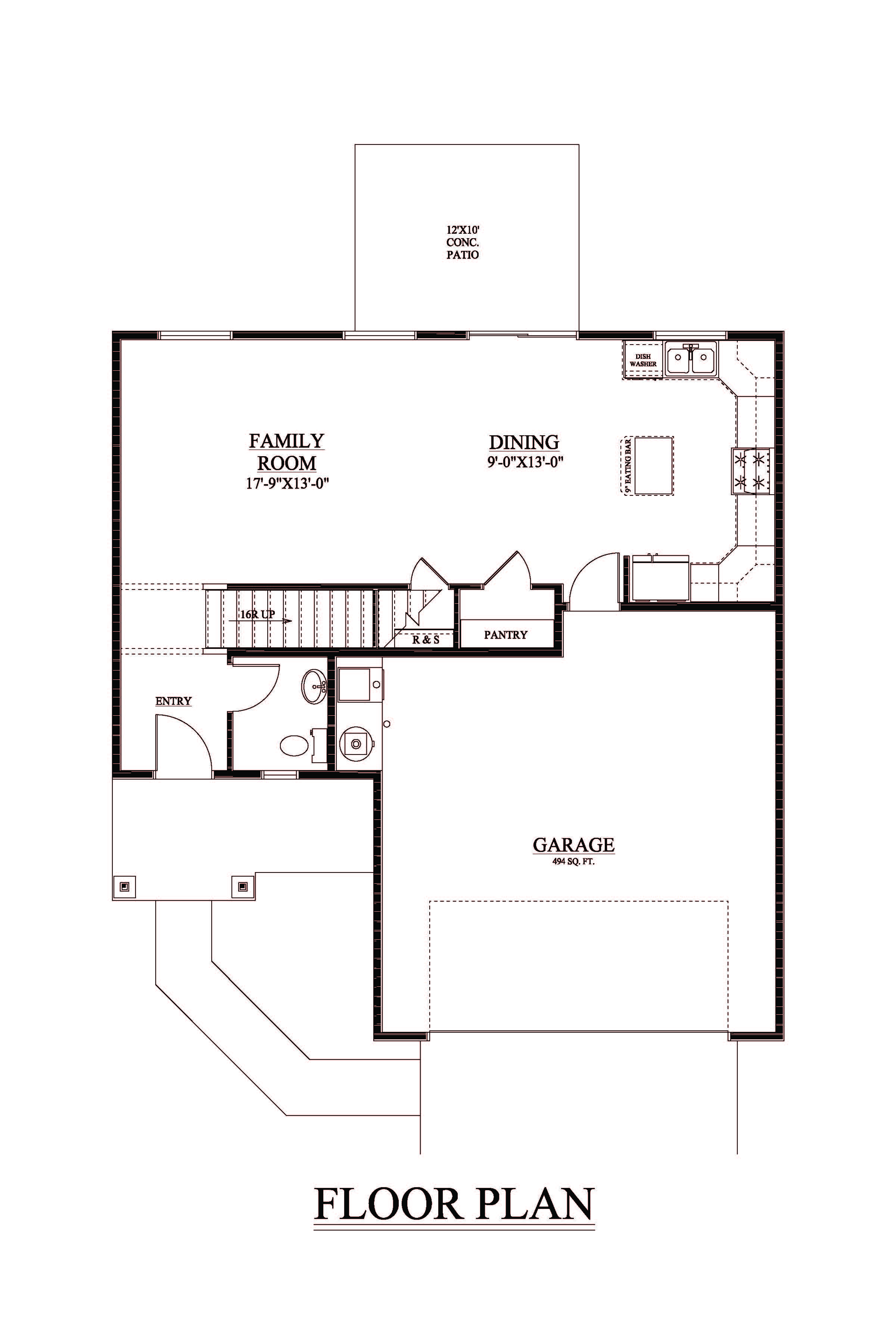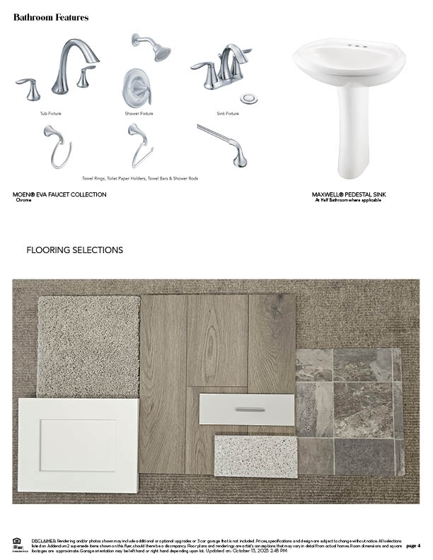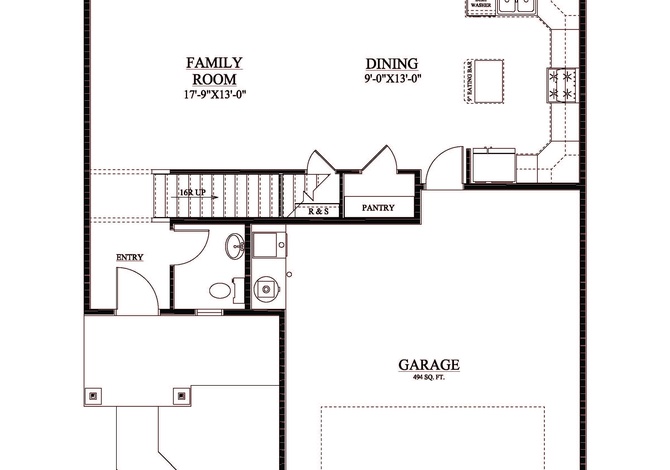 This two story floor plan features shake accents at garage, a covered front porch with 12' x 10' back concrete patio. Main floor includes 9’ ceilings throughout, an open floor concept from the family room, dining room and kitchen, and a half bathroom. Kitchen features 42" upper cabinets, an island with eating bar overhang, Moen® stainless steel pullout faucet, stainless steel appliances, and a pantry.