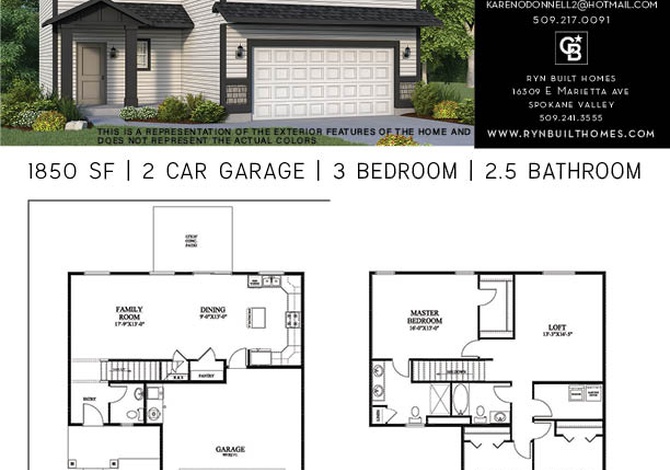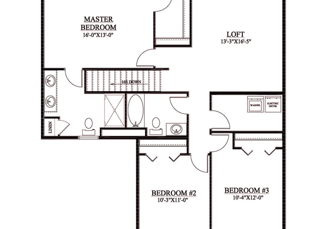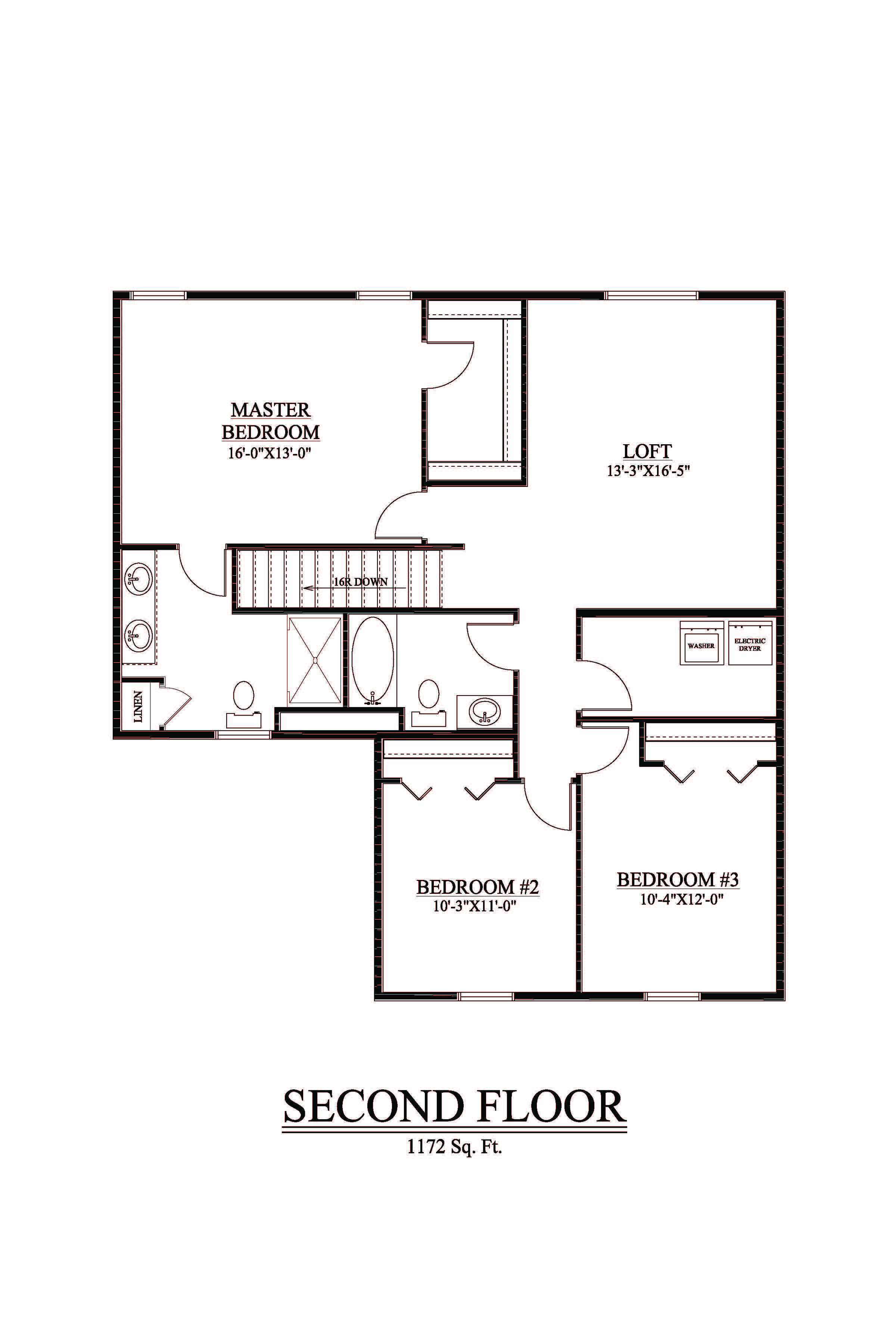 Second floor includes a loft area, all three bedrooms, a guest bathroom and the laundry room for added convenience. Master suite features a walk-in closet and full bathroom with double sinks, 5' fiberglass shower, and a linen closet.